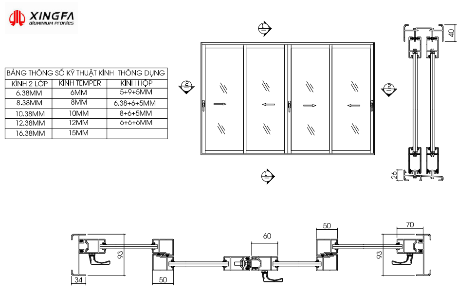 Thông số kỹ thuật cơ bản cửa sổ mở trượt nhôm Xingfa nhập khẩu